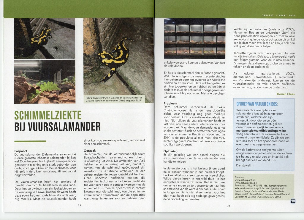 Claes, D. (2024) Schimmelziekte bij vuursalamanders, VOC’ke 20 (1) 24-25